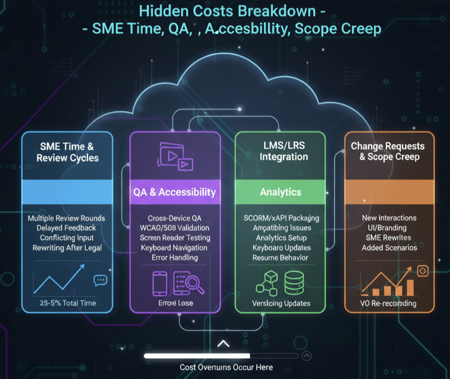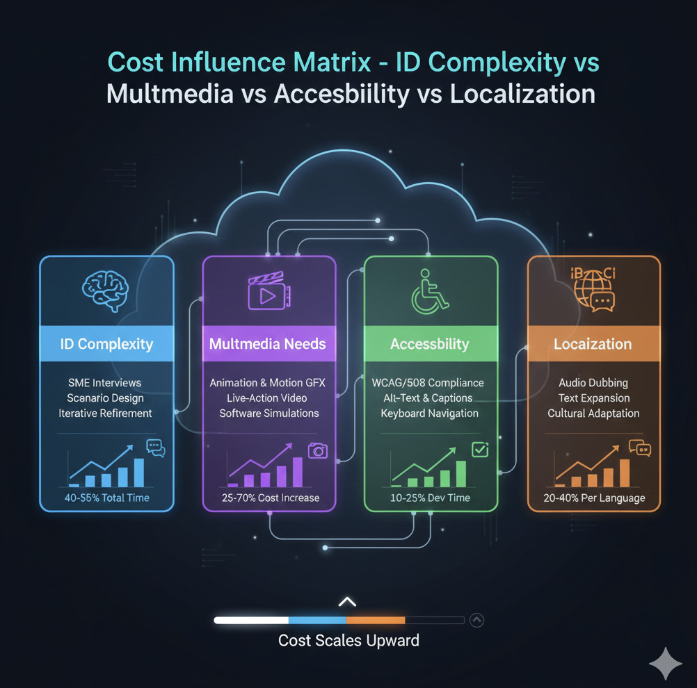 This shift requires clearer budgeting, especially when development involves animations, branching scenarios, simulations, compliance requirements, or multi-language versions.