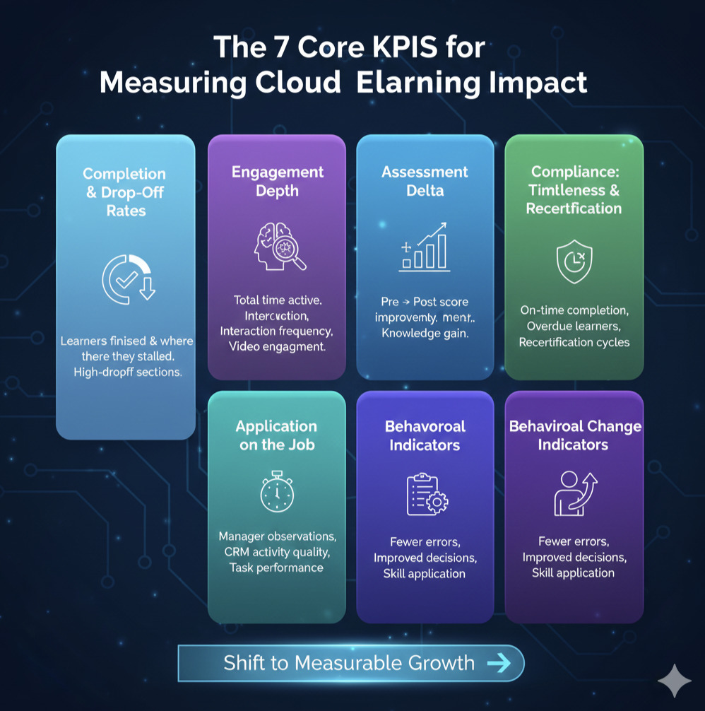 In cloud eLearning, impact must be measured through skill proficiency, application, and improvement, not just module completion.